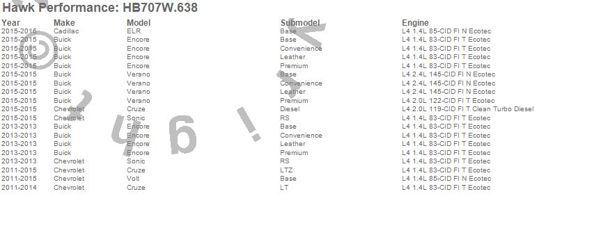 Below is an abreviated list of applications for the DTC-30 Disc Brake Pad.Cruze, ELR, Encore, Sonic, Verano, Volt, Buick, Cadillac, Chevrolet, 2016, 2015, 2014, 2013, 2012, 2011 moreā¦