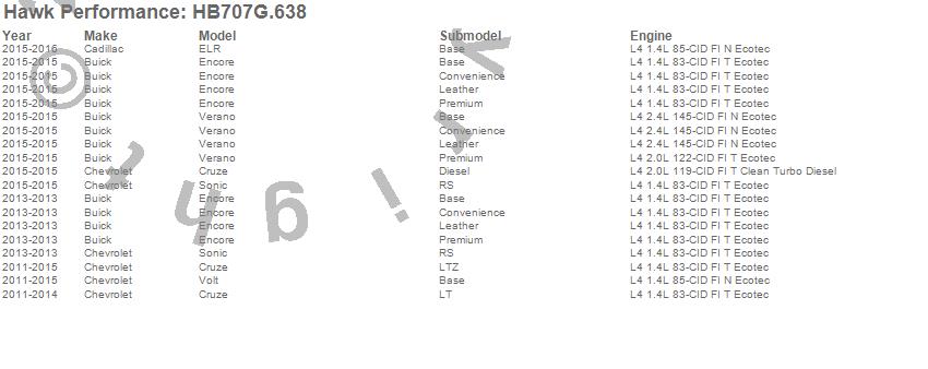 Below is an abreviated list of applications for the DTC-60 Disc Brake Pad.