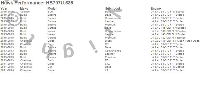 Hawk Performance #HB707U.638 DTC-70 Disc Brake Pad Features: