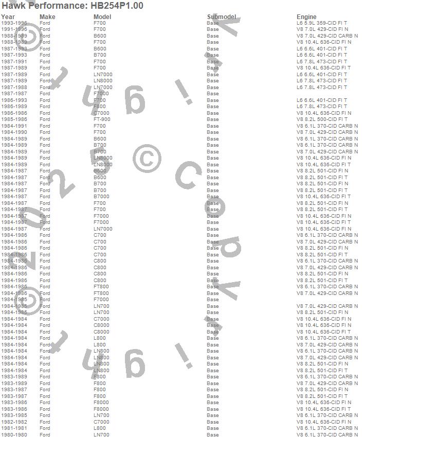 Below is an abreviated list of applications for the SuperDuty Disc Brake Pad.