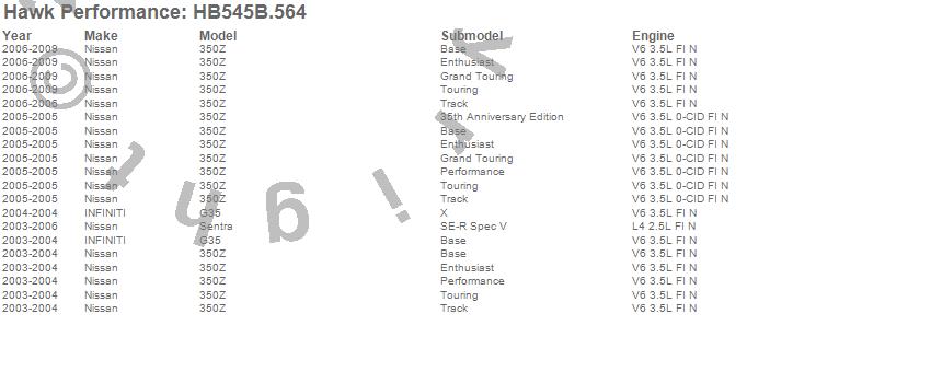 Below is an abreviated list of applications for the HPS 5.0 Disc Brake Pad.