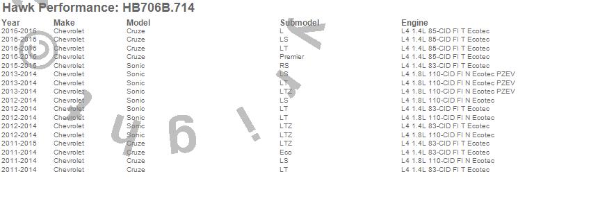Below is an abreviated list of applications for the HPS 5.0 Disc Brake Pad.