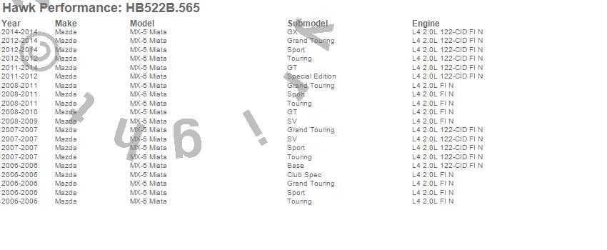 Below is an abreviated list of applications for the HPS 5.0 Disc Brake Pad.