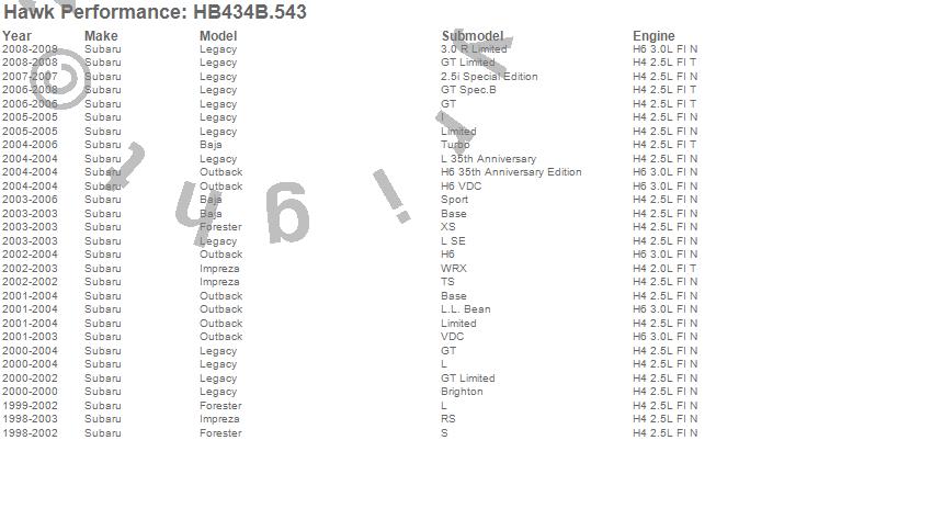 Below is an abreviated list of applications for the HPS 5.0 Disc Brake Pad.