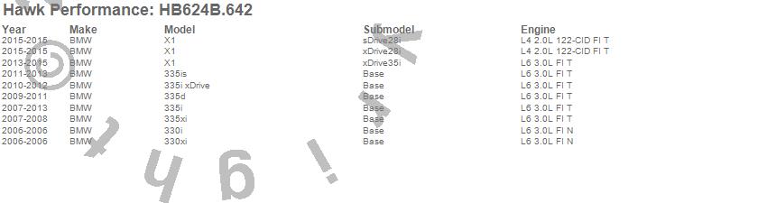 Below is an abreviated list of applications for the HPS 5.0 Disc Brake Pad.