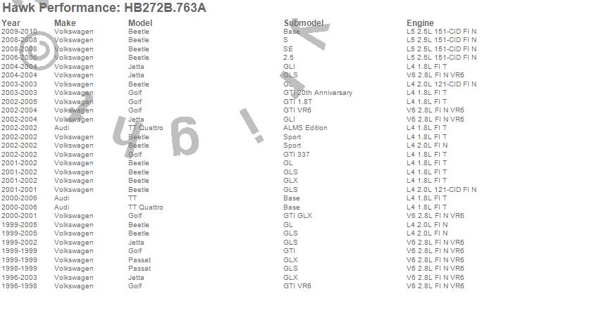 Below is an abreviated list of applications for the HPS 5.0 Disc Brake Pad.