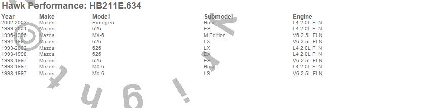 Below is an abreviated list of applications for the Blue 9012 Disc Brake Pad.626, MX-6, Protege5, Mazda, 2003, 2002, 2001, 2000, 1999, 1998, 1997, 1996, 1995, 1994, 1993 moreā¦