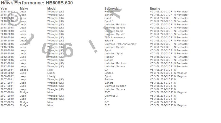 Below is an abreviated list of applications for the HPS 5.0 Disc Brake Pad.