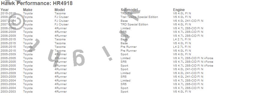Below is an abreviated list of applications for the Sector 27 Rotor.4Runner, FJ Cruiser, Tacoma, Toyota, 2015, 2014, 2013, 2012, 2011, 2010, 2009, 2008, 2007, 2006, 2005, 2004, 2003 moreā¦
