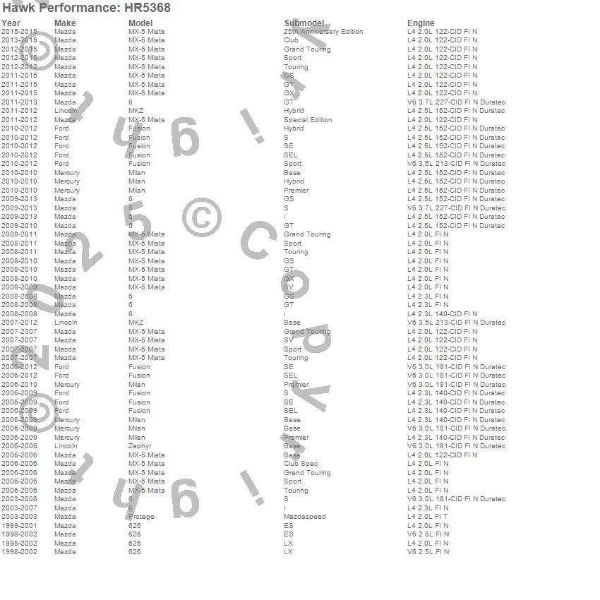 Below is an abreviated list of applications for the Sector 27 Rotor.6, 626, Fusion, Milan, MKZ, MX-5 Miata, Protege, Zephyr, Ford, Lincoln, Mazda, Mercury, 2015, 2014, 2013, 2012, 2011, 2010, 2009, 2008 moreā¦