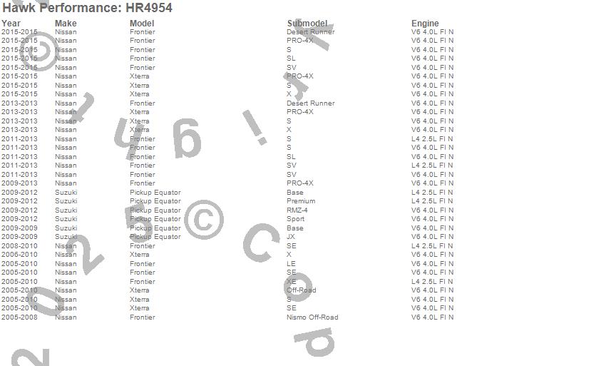 Below is an abreviated list of applications for the Sector 27 Rotor.Equator, Frontier, Xterra, Nissan, Suzuki, 2015, 2013, 2012, 2011, 2010, 2009, 2008, 2007, 2006, 2005 moreā¦