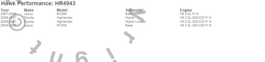 Below is an abreviated list of applications for the Sector 27 Rotor.Highlander, RX330, RX350, Lexus, Toyota, 2009, 2008, 2007, 2006, 2005, 2004 moreā¦