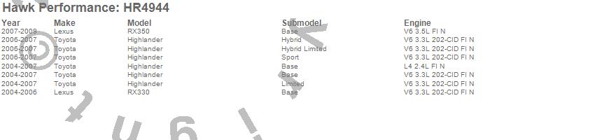 Below is an abreviated list of applications for the Sector 27 Rotor.Highlander, RX330, RX350, Lexus, Toyota, 2009, 2008, 2007, 2006, 2005, 2004 moreā¦