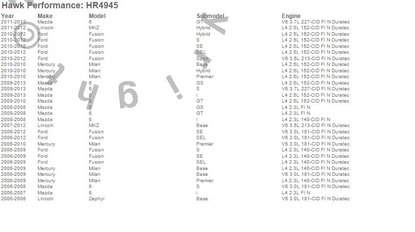 Below is an abreviated list of applications for the Sector 27 Rotor.6, Fusion, Milan, MKZ, Zephyr, Ford, Lincoln, Mazda, Mercury, 2013, 2012, 2011, 2010, 2009, 2008, 2007, 2006 moreā¦