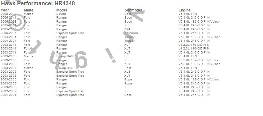 Below is an abreviated list of applications for the Sector 27 Rotor.B4000, Explorer Sport Trac, Ranger, Ford, Mazda, 2011, 2010, 2009, 2008, 2007, 2006, 2005, 2004, 2003, 2002, 2001 moreā¦