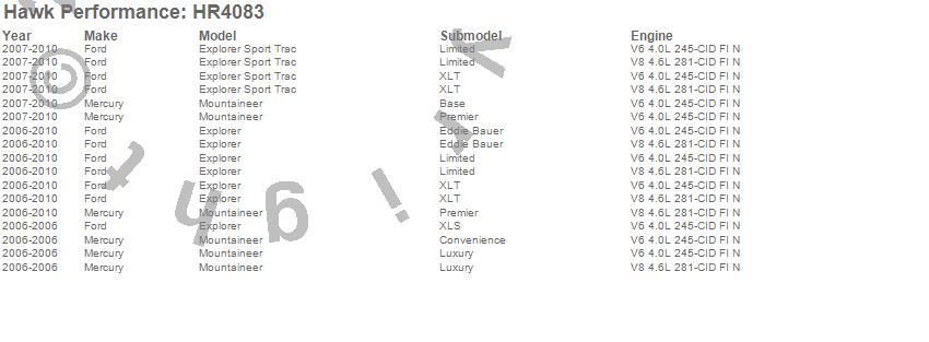 Below is an abreviated list of applications for the Sector 27 Rotor.Explorer, Explorer Sport Trac, Mountaineer, Ford, Mercury, 2010, 2009, 2008, 2007, 2006 moreā¦