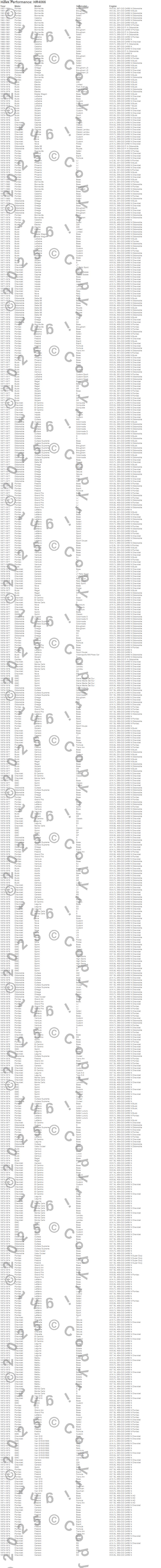 Apollo, Bonneville, Camaro, Caprice, Catalina, Century, Chevelle, Cutlass, Cutlass Supreme, Delta 88, El Camino, Electra, Estate Wagon, Firebird, G10 Van, G15/G1500 Van, Grand Am, Grand Prix, GTO, Impala moreā¦