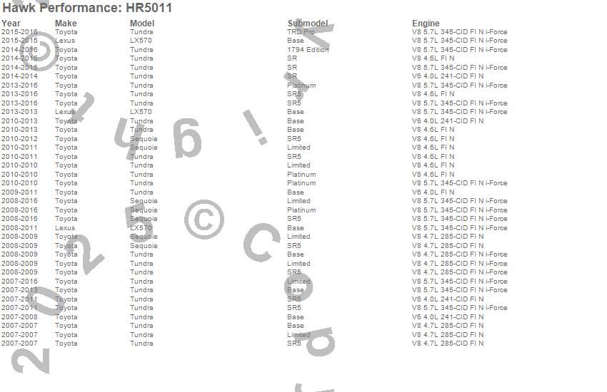 Below is an abreviated list of applications for the Sector 27 Rotor.LX570, Sequoia, Tundra, Lexus, Toyota, 2016, 2015, 2014, 2013, 2012, 2011, 2010, 2009, 2008, 2007 moreā¦
