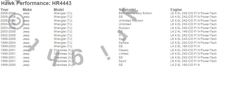 Below is an abreviated list of applications for the Sector 27 Rotor.Cherokee (XJ), Wrangler (TJ), Jeep, 2006, 2005, 2004, 2003, 2002, 2001, 2000, 1999 moreā¦