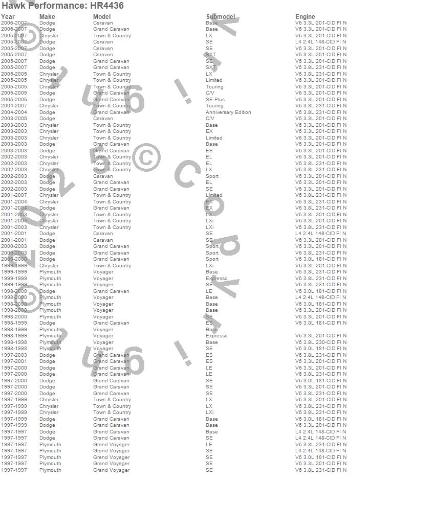 Below is an abreviated list of applications for the Sector 27 Rotor.Caravan, Grand Caravan, Grand Voyager, Town & Country, Voyager, Chrysler, Dodge, Plymouth, 2007, 2006, 2005, 2004, 2003, 2002, 2001, 2000, 1999, 1998, 1997 moreā¦