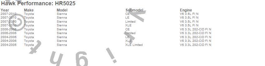 Below is an abreviated list of applications for the Sector 27 Rotor.Sienna, Toyota, 2010, 2009, 2008, 2007, 2006, 2005, 2004 moreā¦