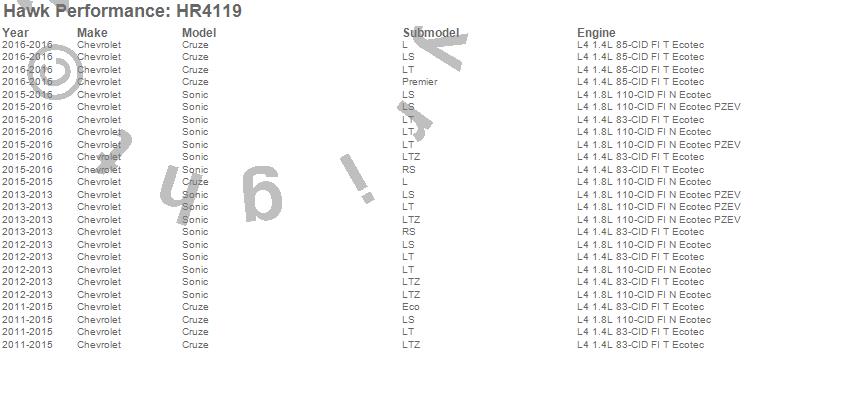 Below is an abreviated list of applications for the Sector 27 Rotor.Cruze, Sonic, Chevrolet, 2016, 2015, 2014, 2013, 2012, 2011 moreā¦