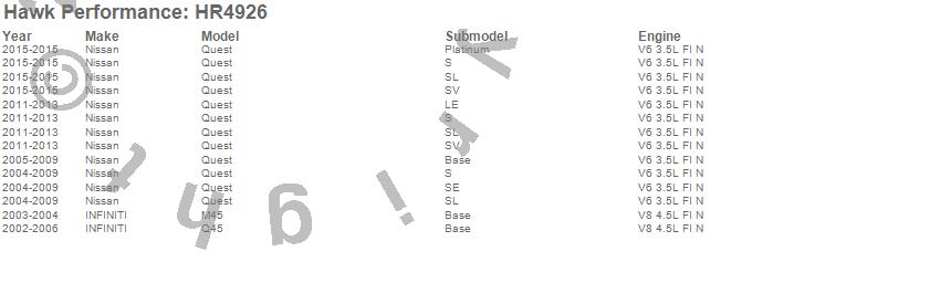 Below is an abreviated list of applications for the Sector 27 Rotor.M45, Q45, Quest, INFINITI, Nissan, 2015, 2013, 2012, 2011, 2009, 2008, 2007, 2006, 2005, 2004, 2003, 2002 moreā¦