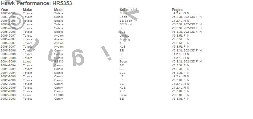 Below is an abreviated list of applications for the Sector 27 Rotor.Avalon, Camry, ES300, ES330, Solara, Lexus, Toyota, 2008, 2007, 2006, 2005, 2004, 2003, 2002 moreā¦