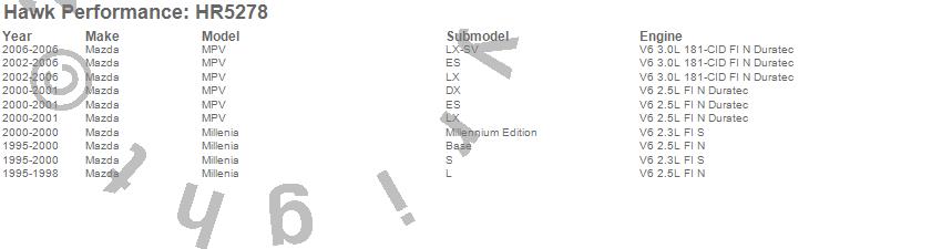 Below is an abreviated list of applications for the Sector 27 Rotor.Millenia, MPV, Mazda, 2006, 2005, 2004, 2003, 2002, 2001, 2000, 1999, 1998, 1997, 1996, 1995 moreā¦