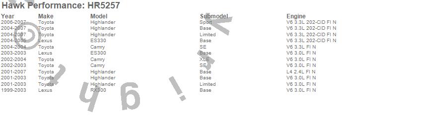 Below is an abreviated list of applications for the Sector 27 Rotor.Camry, ES300, ES330, Highlander, RX300, Lexus, Toyota, 2007, 2006, 2005, 2004, 2003, 2002, 2001, 2000, 1999 moreā¦
