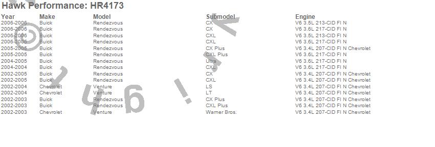 Below is an abreviated list of applications for the Sector 27 Rotor.Rendezvous, Venture, Buick, Chevrolet, 2006, 2005, 2004, 2003, 2002 moreā¦