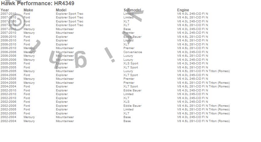Below is an abreviated list of applications for the Sector 27 Rotor.Explorer, Explorer Sport Trac, Mountaineer, Ford, Mercury, 2010, 2009, 2008, 2007, 2006, 2005, 2004, 2003, 2002 moreā¦