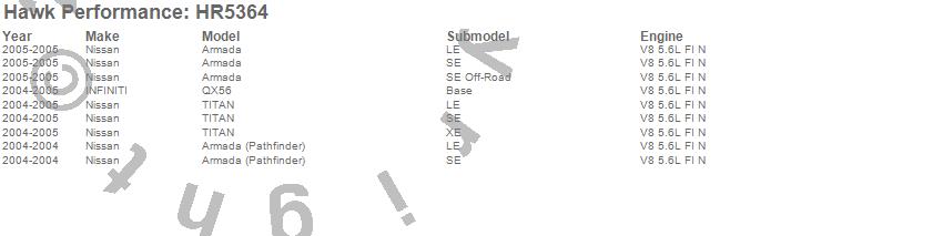 Below is an abreviated list of applications for the Sector 27 Rotor.Armada, Armada (Pathfinder), QX56, TITAN, INFINITI, Nissan, 2005, 2004 moreā¦
