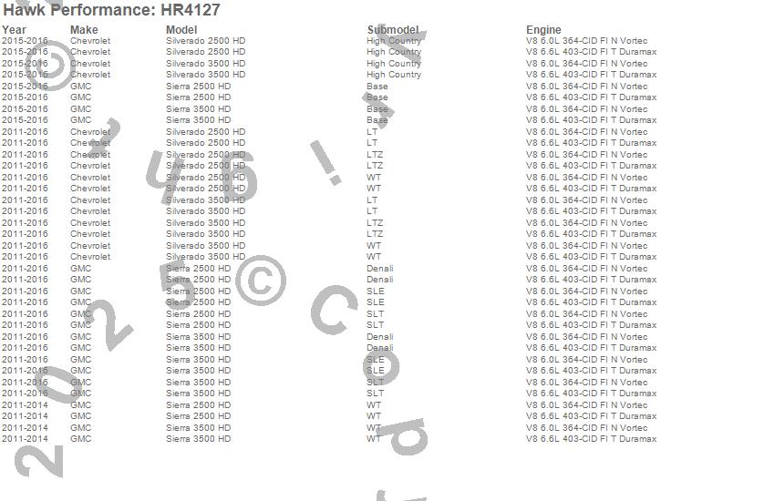 Below is an abreviated list of applications for the Sector 27 Rotor.Sierra 2500 HD, Sierra 3500 HD, Silverado 2500 HD, Silverado 3500 HD, Chevrolet, GMC, 2016, 2015, 2014, 2013, 2012, 2011 moreā¦