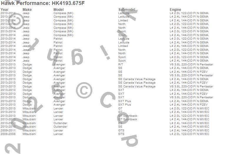 Below is an abreviated list of applications for the Sector 27 Brake Kits.Avenger, Compass, Lancer, Outlander, Patriot, Dodge, Jeep, Mitsubishi, 2014, 2013, 2011, 2010, 2009, 2008 moreā¦