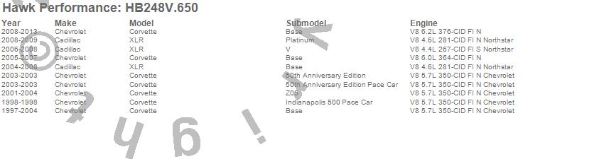 Below is an abreviated list of applications for the DTC-50 Disc Brake Pad.Corvette, XLR, Cadillac, Chevrolet, 2013, 2012, 2011, 2010, 2009, 2008, 2007, 2006, 2005, 2004, 2003, 2002, 2001, 2000, 1999, 1998 moreā¦