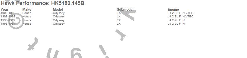 Below is an abreviated list of applications for the Sector 27 Brake Kits.Odyssey, Honda, 1998, 1997, 1996, 1995 moreā¦