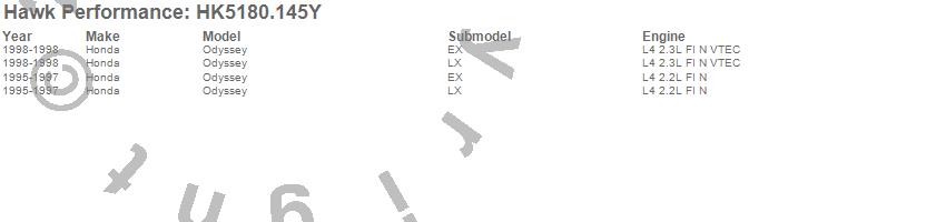 Below is an abreviated list of applications for the Sector 27 Brake Kits.Odyssey, Honda, 1998, 1997, 1996, 1995 moreā¦