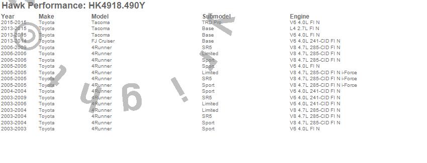 Below is an abreviated list of applications for the Sector 27 Brake Kits.4Runner, FJ Cruiser, Tacoma, Toyota, 2015, 2014, 2013, 2009, 2008, 2007, 2006, 2005, 2004, 2003 moreā¦