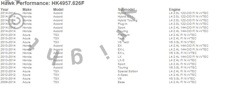 Below is an abreviated list of applications for the Sector 27 Brake Kits.Accord, TSX, Acura, Honda, 2014, 2013, 2012, 2011, 2010, 2009 moreā¦