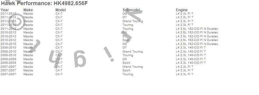 Below is an abreviated list of applications for the Sector 27 Brake Kits.CX-7, Mazda, 2012, 2011, 2010, 2009, 2008, 2007 moreā¦