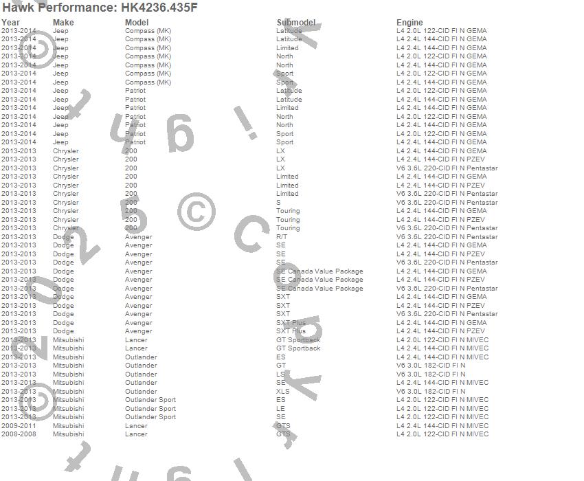 Below is an abreviated list of applications for the Sector 27 Brake Kits.200, Avenger, Compass, Lancer, Outlander, Outlander Sport, Patriot, Chrysler, Dodge, Jeep, Mitsubishi, 2014, 2013, 2011, 2010, 2009, 2008 moreā¦