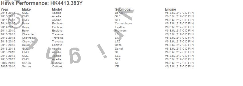 Below is an abreviated list of applications for the Sector 27 Brake Kits.Acadia, Enclave, Outlook, Traverse, Buick, Chevrolet, GMC, Saturn, 2015, 2014, 2013, 2010, 2009, 2008, 2007 moreā¦