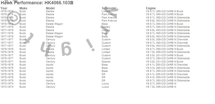 Below is an abreviated list of applications for the Sector 27 Brake Kits.Apollo, Century, Electra, Estate Wagon, Buick, 1978, 1977, 1976, 1975, 1974, 1973 moreā¦