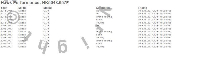 Below is an abreviated list of applications for the Sector 27 Brake Kits.CX-9, Mazda, 2015, 2013, 2012, 2011, 2010, 2009, 2008, 2007 moreā¦