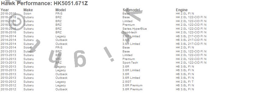 Below is an abreviated list of applications for the Sector 27 Brake Kits.BRZ, FR-S, Legacy, Outback, Scion, Subaru, 2016, 2014, 2013, 2012, 2011, 2010 moreā¦