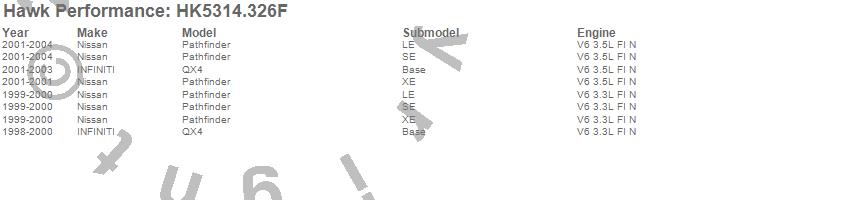 Below is an abreviated list of applications for the Sector 27 Brake Kits.Pathfinder, QX4, INFINITI, Nissan, 2004, 2003, 2002, 2001, 2000, 1999, 1998 moreā¦