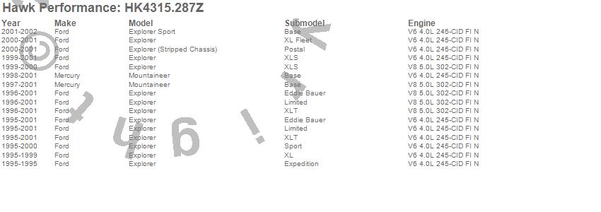 Below is an abreviated list of applications for the Sector 27 Brake Kits.Explorer, Explorer (Stripped Chassis), Explorer Sport, Mountaineer, Ford, Mercury, 2002, 2001, 2000, 1999, 1998, 1997, 1996, 1995 moreā¦