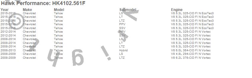 Below is an abreviated list of applications for the Sector 27 Brake Kits.Tahoe, Chevrolet, 2016, 2015, 2014, 2013, 2012, 2011, 2010, 2009, 2008 moreā¦