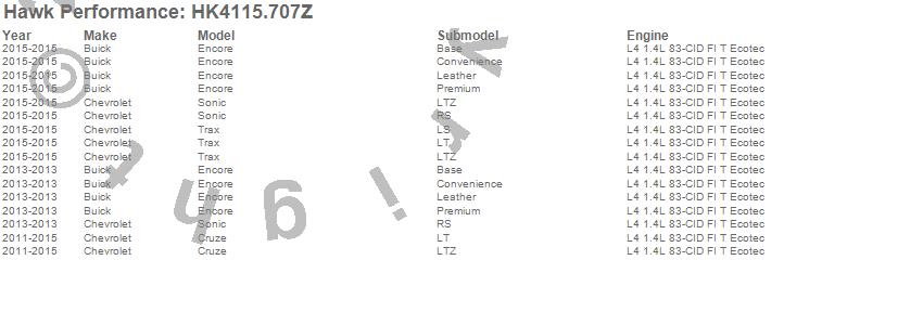 Below is an abreviated list of applications for the Sector 27 Brake Kits.Cruze, Encore, Sonic, Trax, Buick, Chevrolet, 2015, 2014, 2013, 2012, 2011 moreā¦